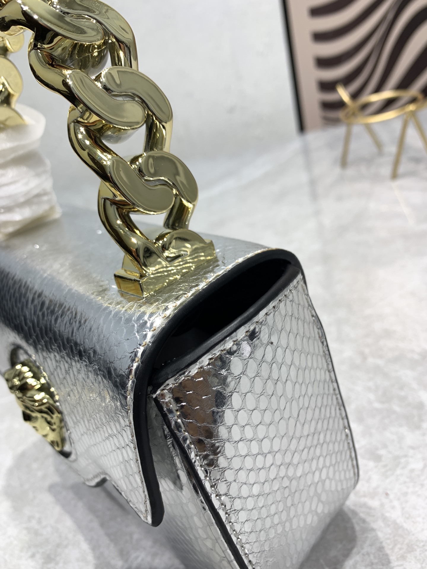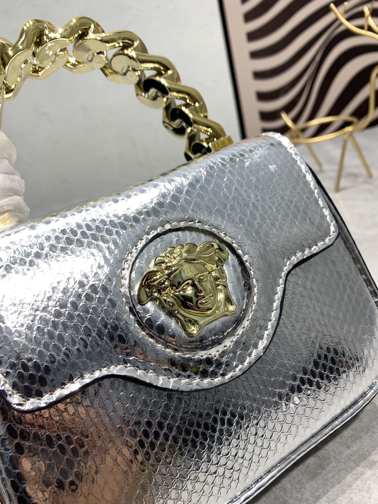 Versace Silver Handbag - Luxury Medusa Snakeskin 360888 Premium Edition