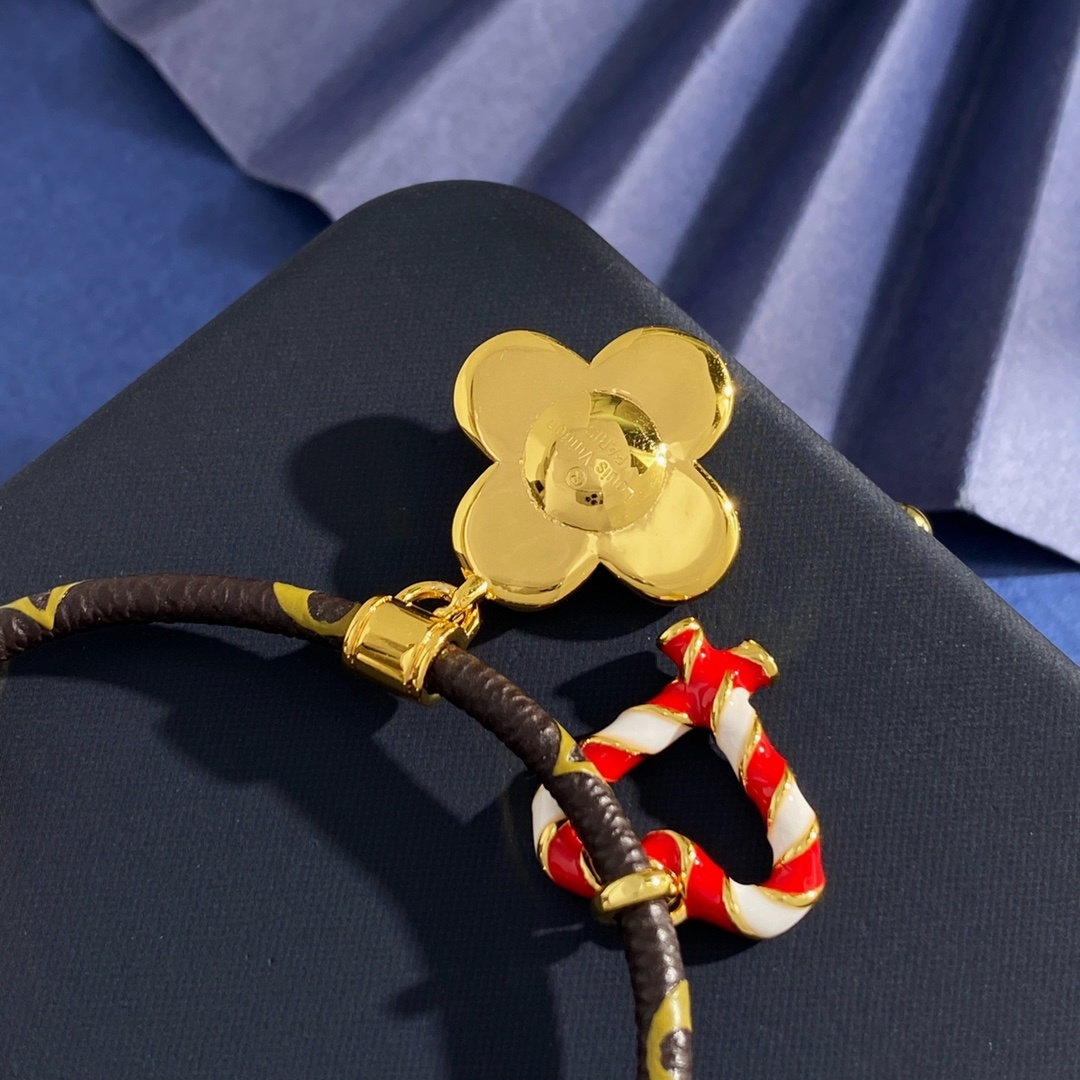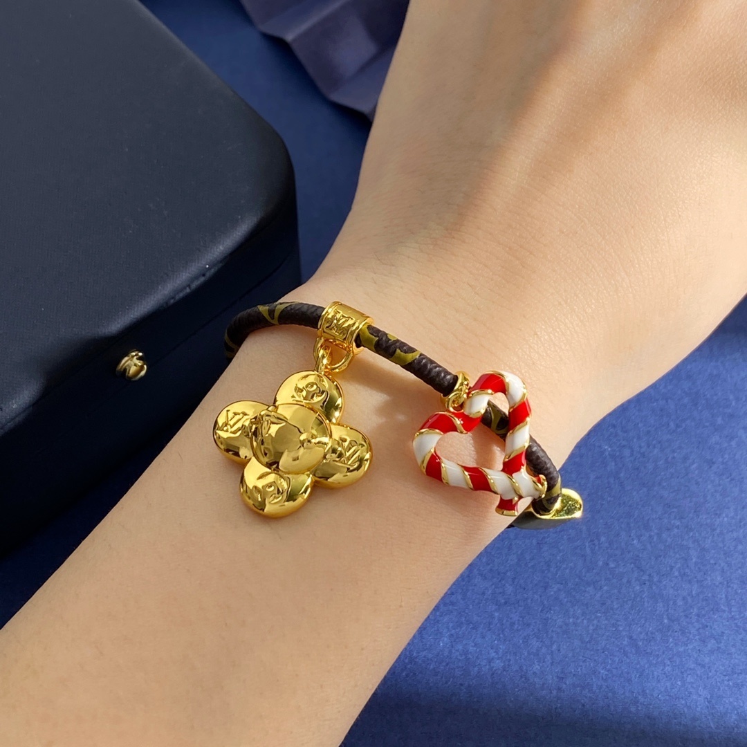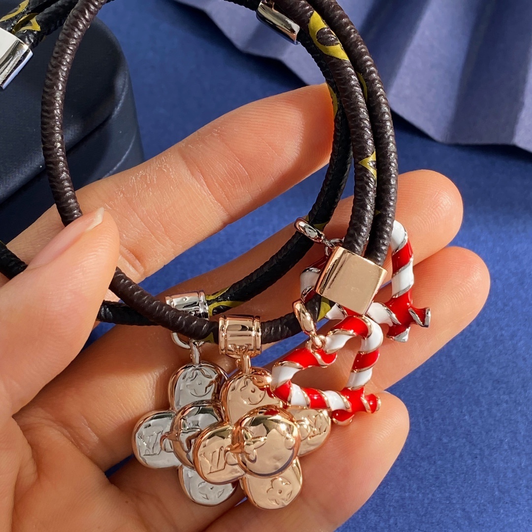 - Festive Charms: Features iconic LV flower and heart-shaped charms, adding a playful yet sophisticated touch. The heart charm is beautifully enameled with red and white stripes, reminiscent of classic Christmas candy canes.