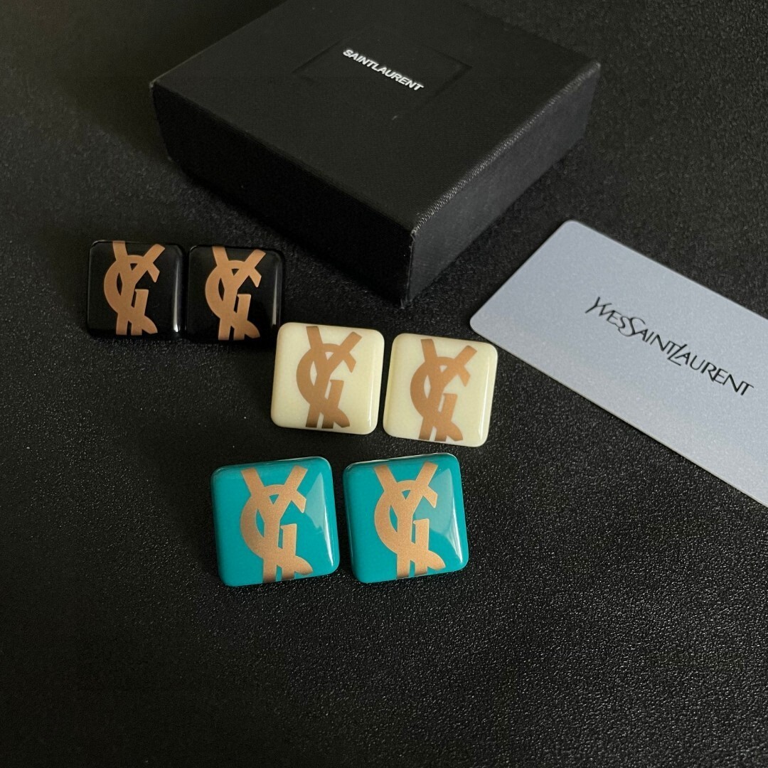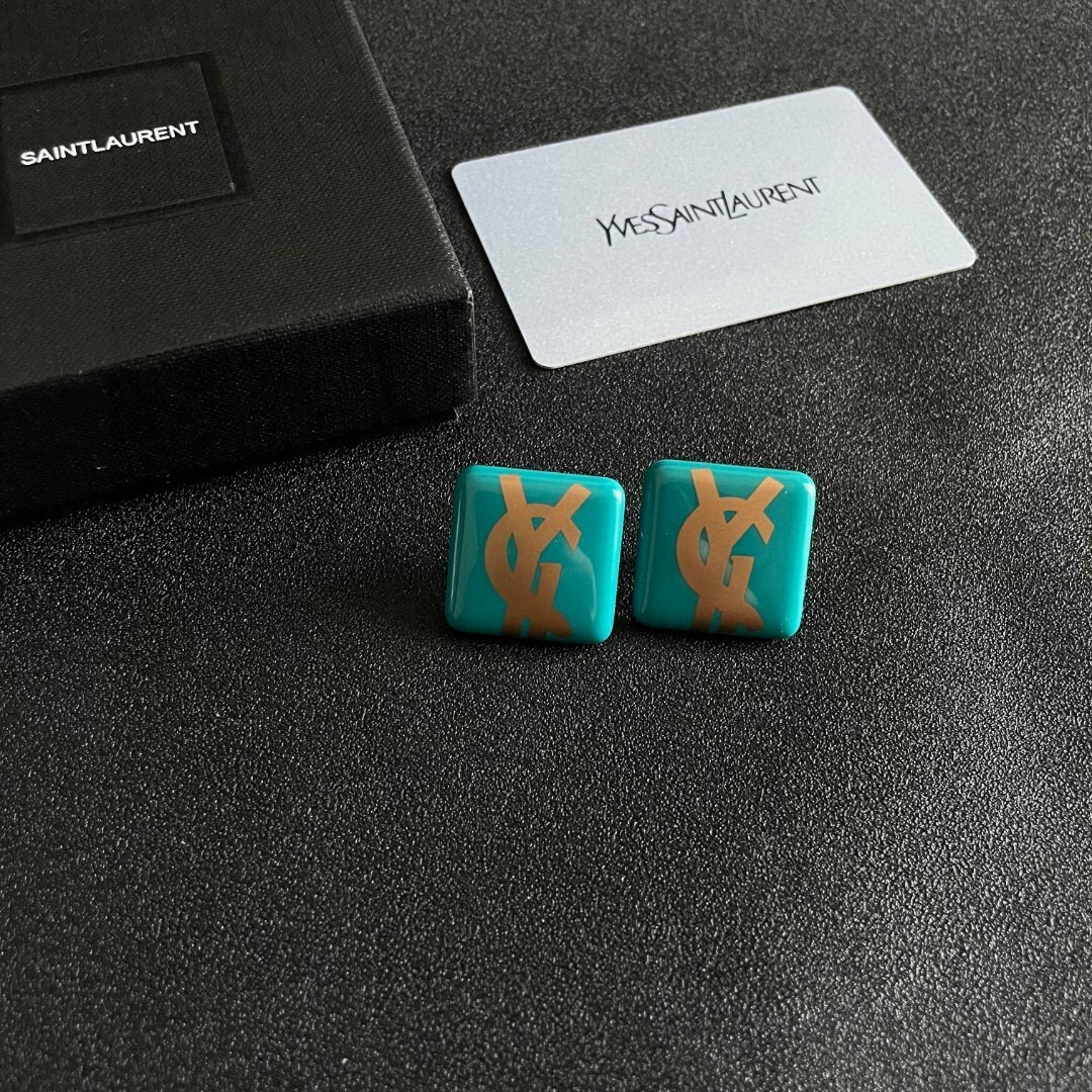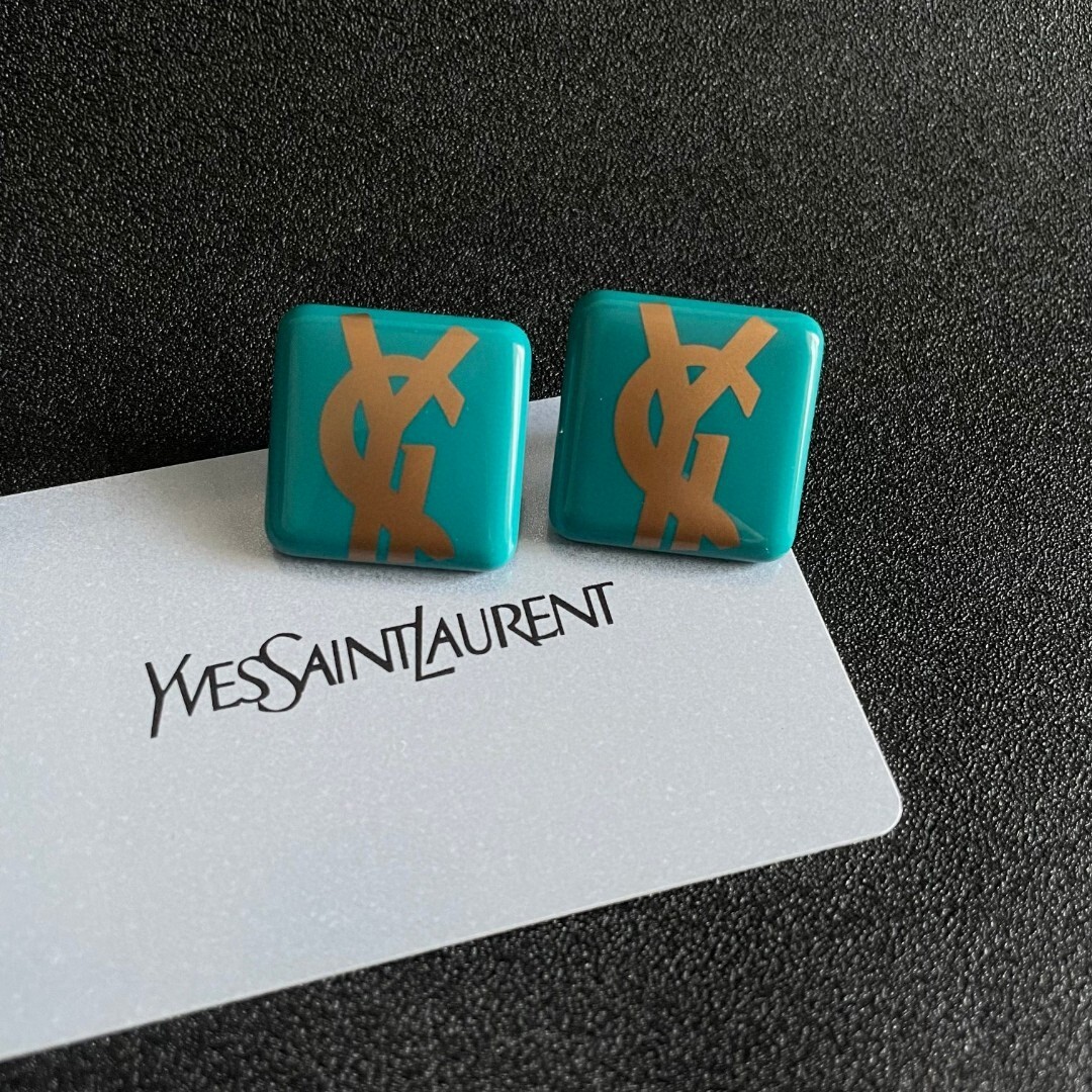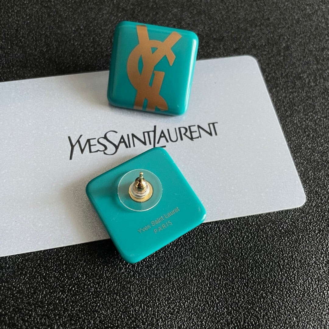 The gold YSL logo is precisely embedded into the resin, ensuring durability and a flawless finish. The stud design offers a secure and comfortable fit, while the vibrant teal color adds a pop of color to your ensemble. These earrings are perfect for those who appreciate unique and stylish accessories.