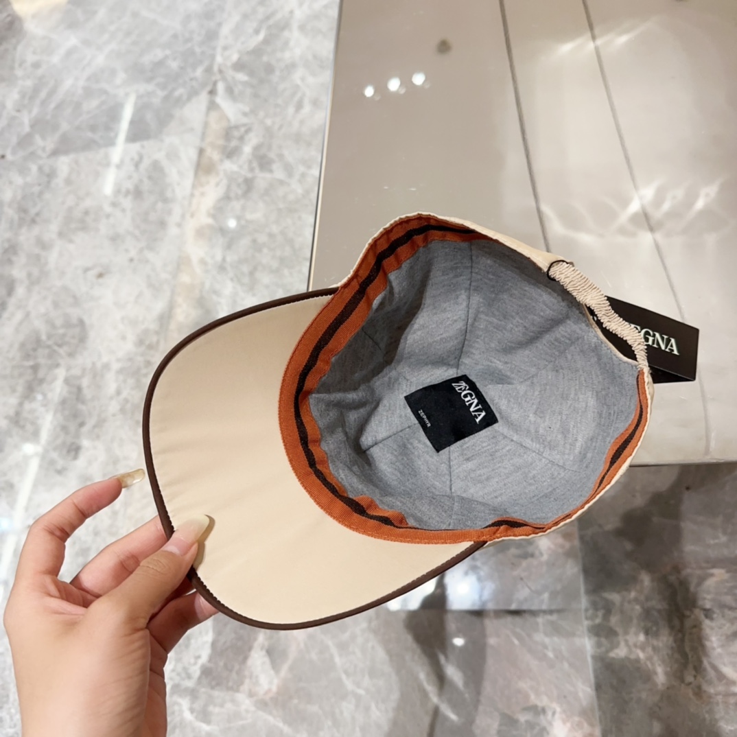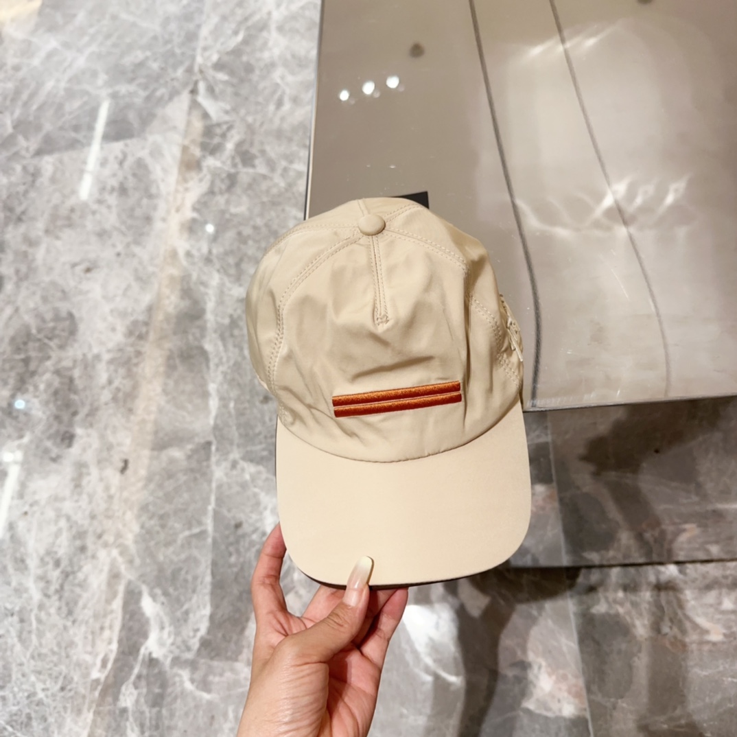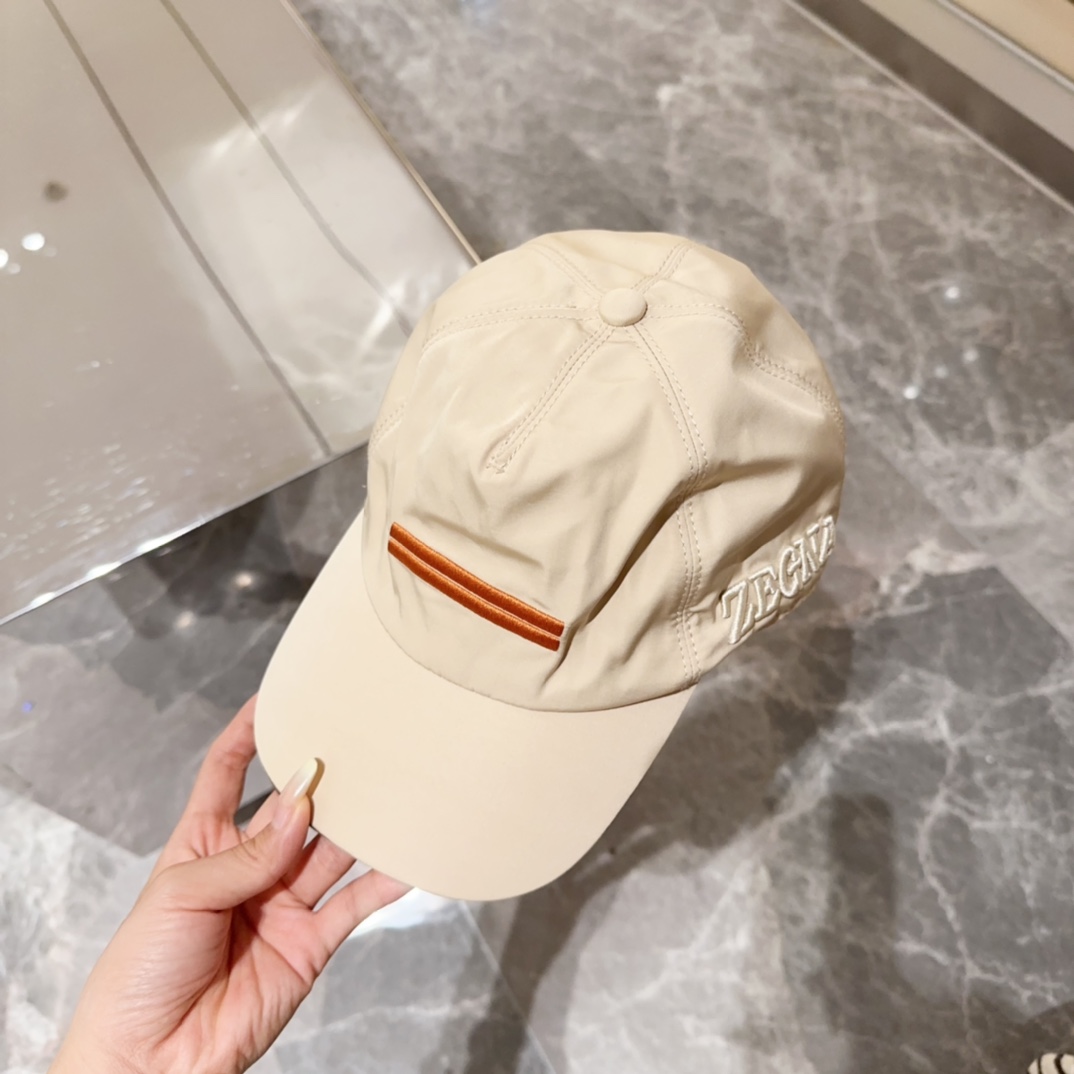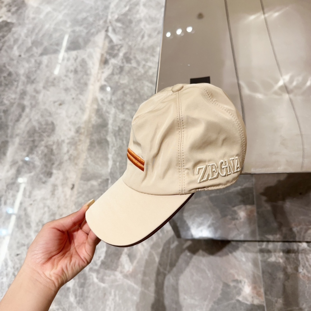 Zegna Beige Nylon Baseball Cap - Brown Stripe Detail