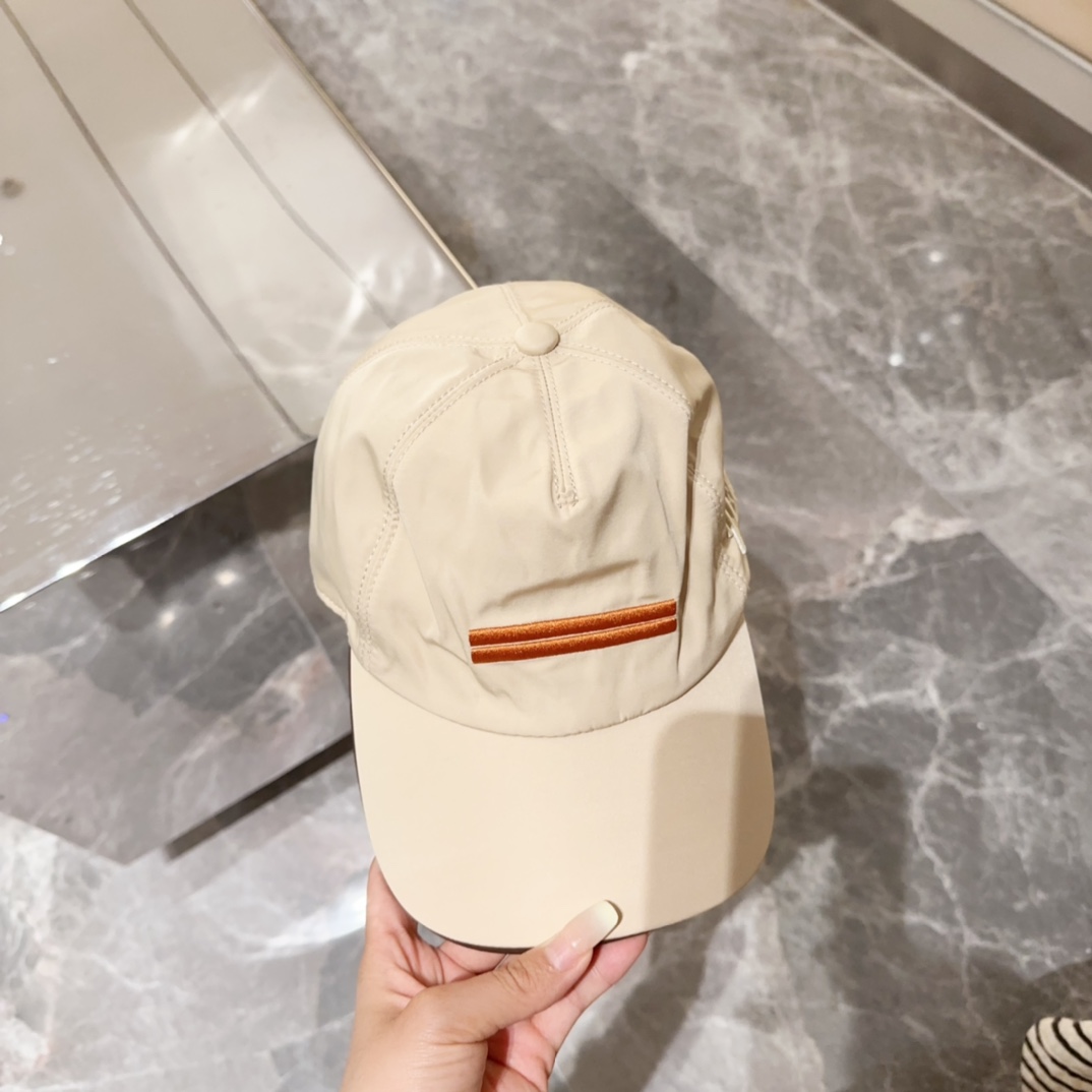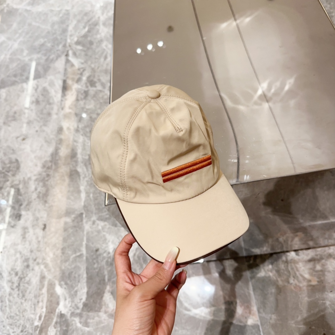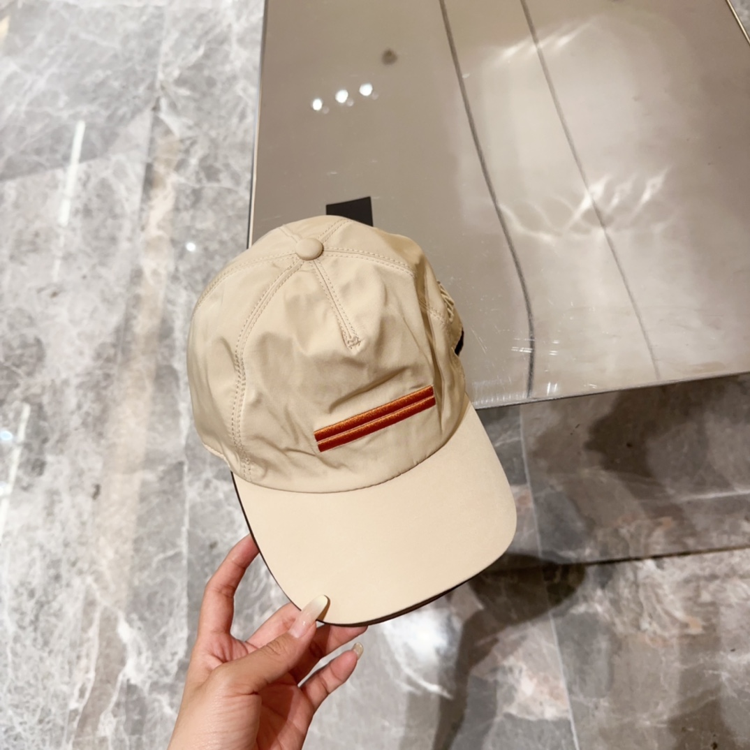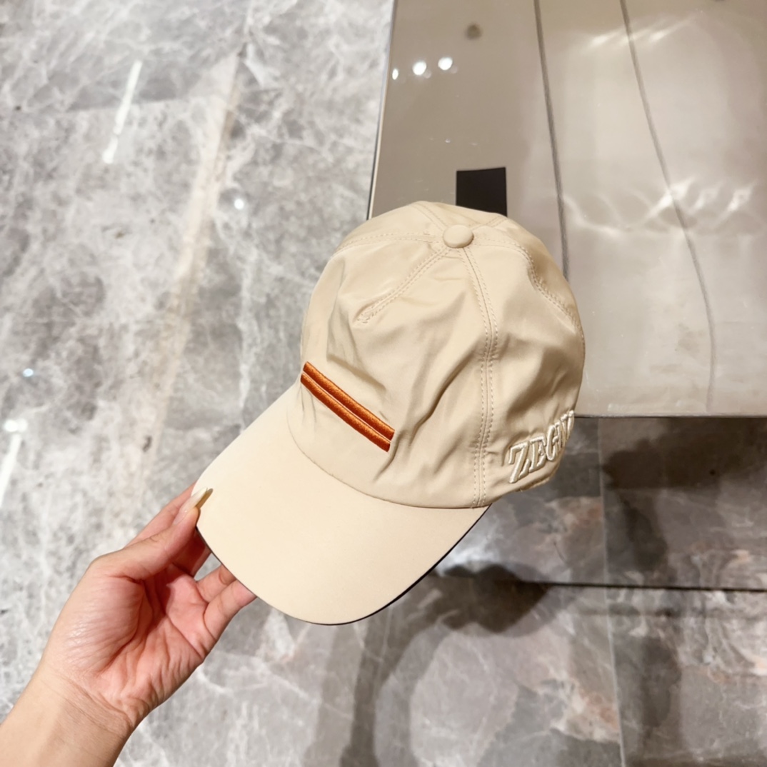 Zegna Beige Nylon Baseball Cap - Brown Stripe Detail